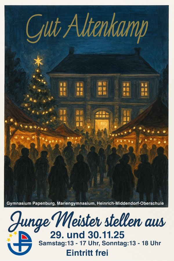 Am 29. und 30. November 2025 werden unter anderem Werke von Schülerinnen und Schülern des Gymnasiums Papenburg auf Gut Altenkamp gezeigt. Der Eintritt ist frei.