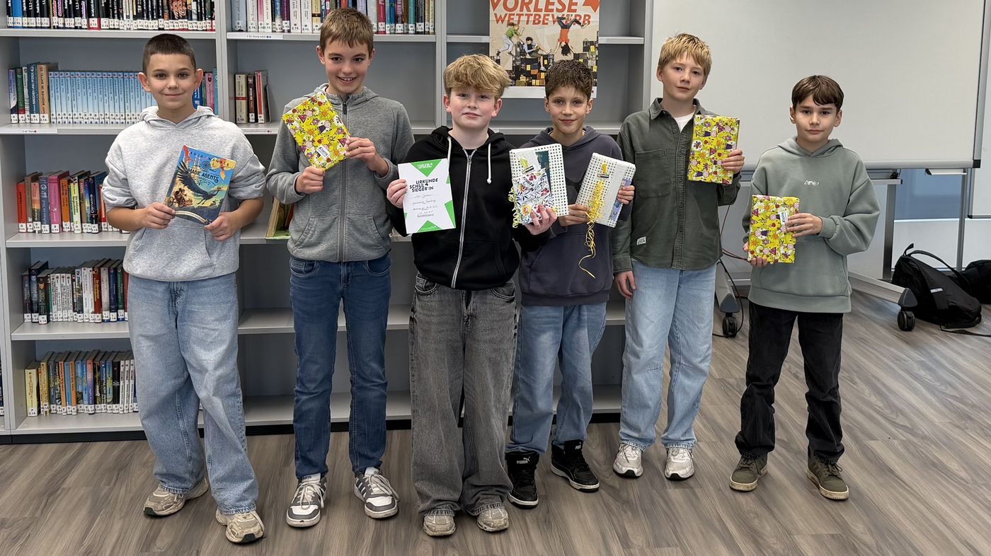 Gewonnen hat Max Stadler aus der Klasse 6c. Er setzte sich in einem spannenden Wettbewerb gegen seine fünf Mitstreiter durch, welche ebenfalls als Klassensieger ins Rennen gegangen waren und sich trotz hervorragender Leistungen geschlagen geben mussten.